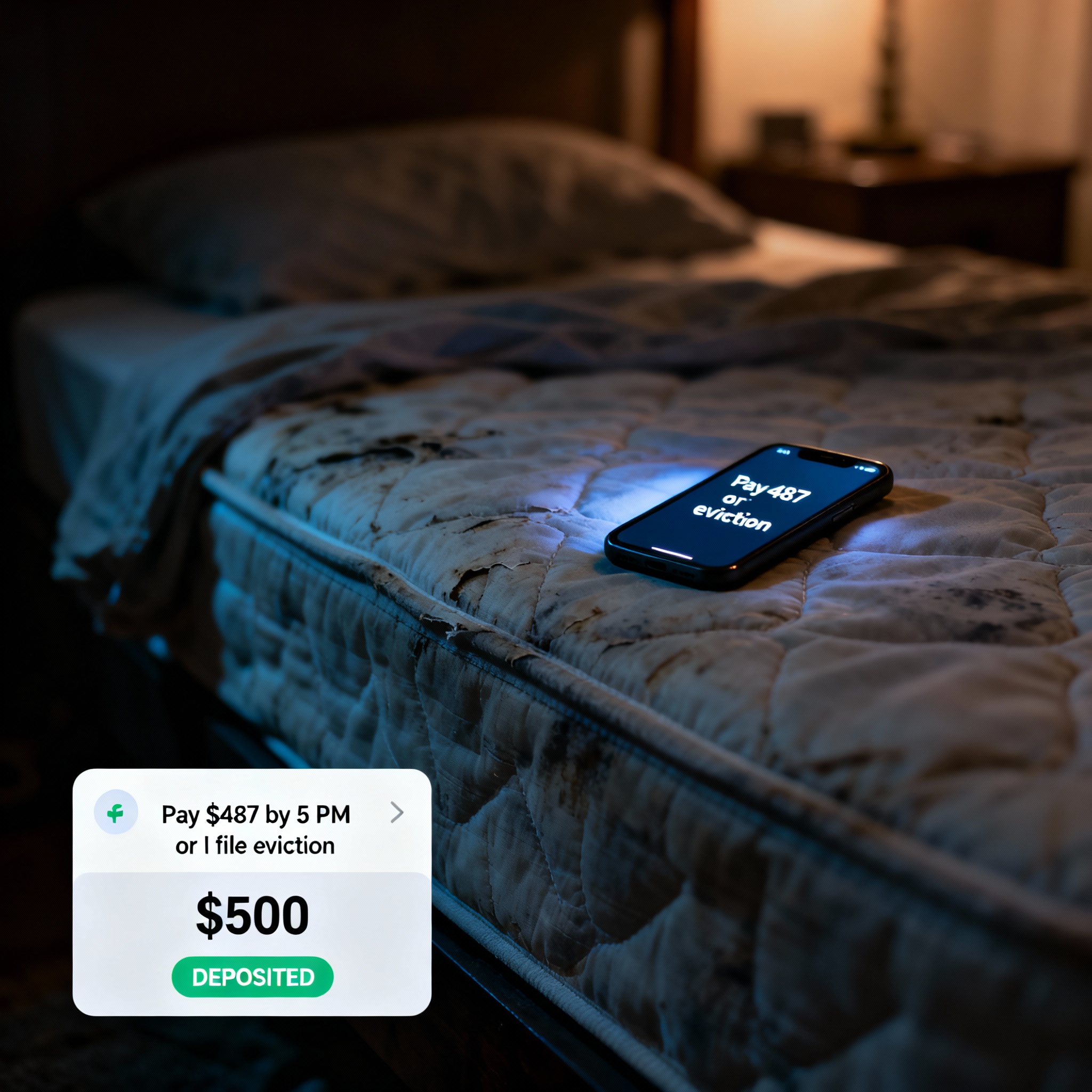At 2:17 AM, she got a notification: “$500 deposited.” She paid her landlord by 9 AM. Eviction stopped.